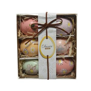Uova decorative lucide in diverse fantasie floreali, box da 6