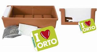 L’orto Urbano, comprende un serbatoio per acqua da 6 litri con rubinetto, un tessuto non tessuto capillare di misura cm 80 x 130 e un sacchetto di argilla espansa.