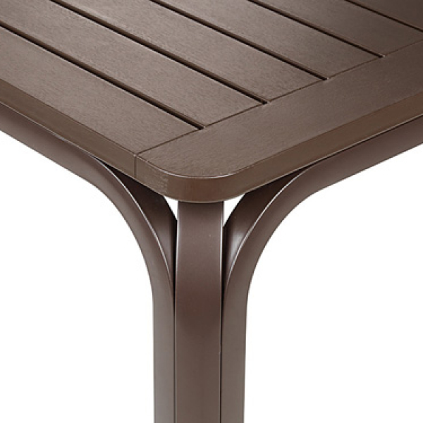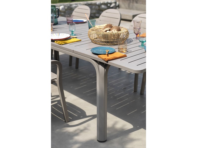 Elegante tavolo con piano dogato in DurelTop e gambe in alluminio verniciato a polveri. Piano estensibile da 140 cm a 210 cm. Facilmente montabile e smontabile.