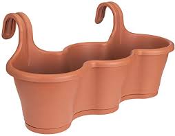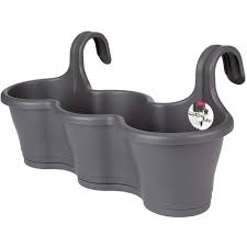 Pratico e colorato vaso da balcone ELHO, con ganci di fissaggio alla ringhiera, ideale per collocare 3 piante con vaso di diametro di 16 cm.